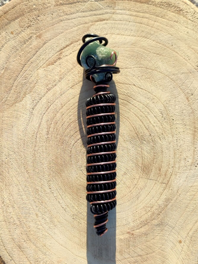 The Crystal – Aventurine is surrounded by a spiral Tesla coil that which strengthens the effect of the mineral, which translates into an immediate, physically felt, healing effect. Its harmonizing effect works both on the environment and the user, generating a subtle energetic pulse around it.It brings you into a natural state of meditation and relaxation as well as removes the negative impact of electro-smog, wi-fi, electrical devices, in your space.