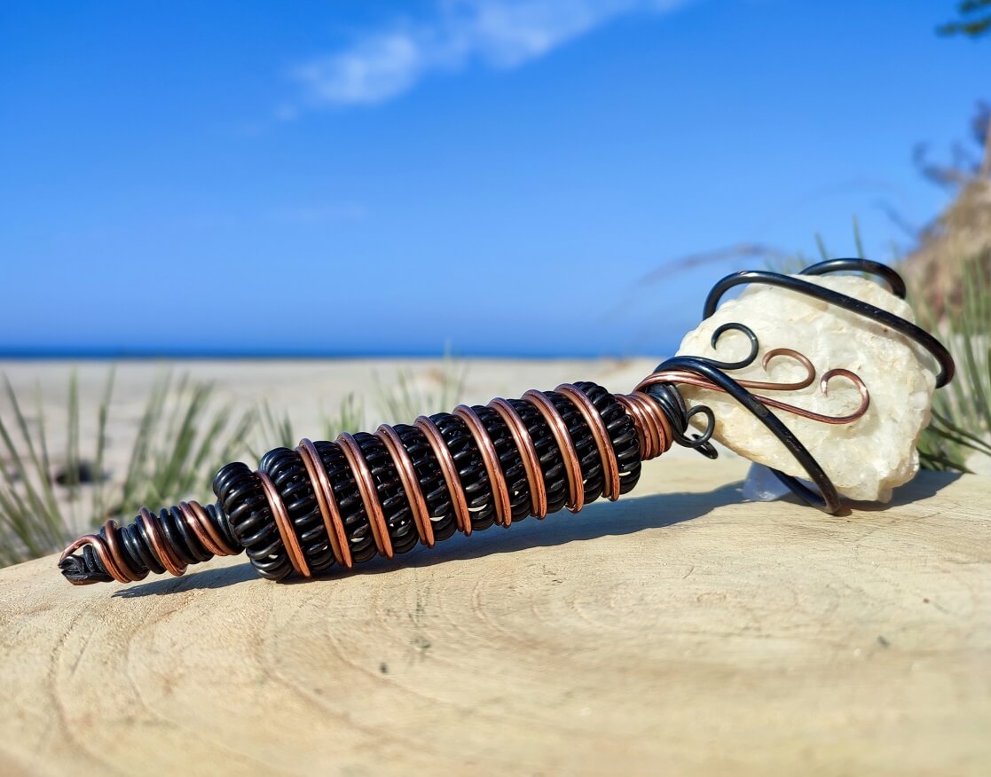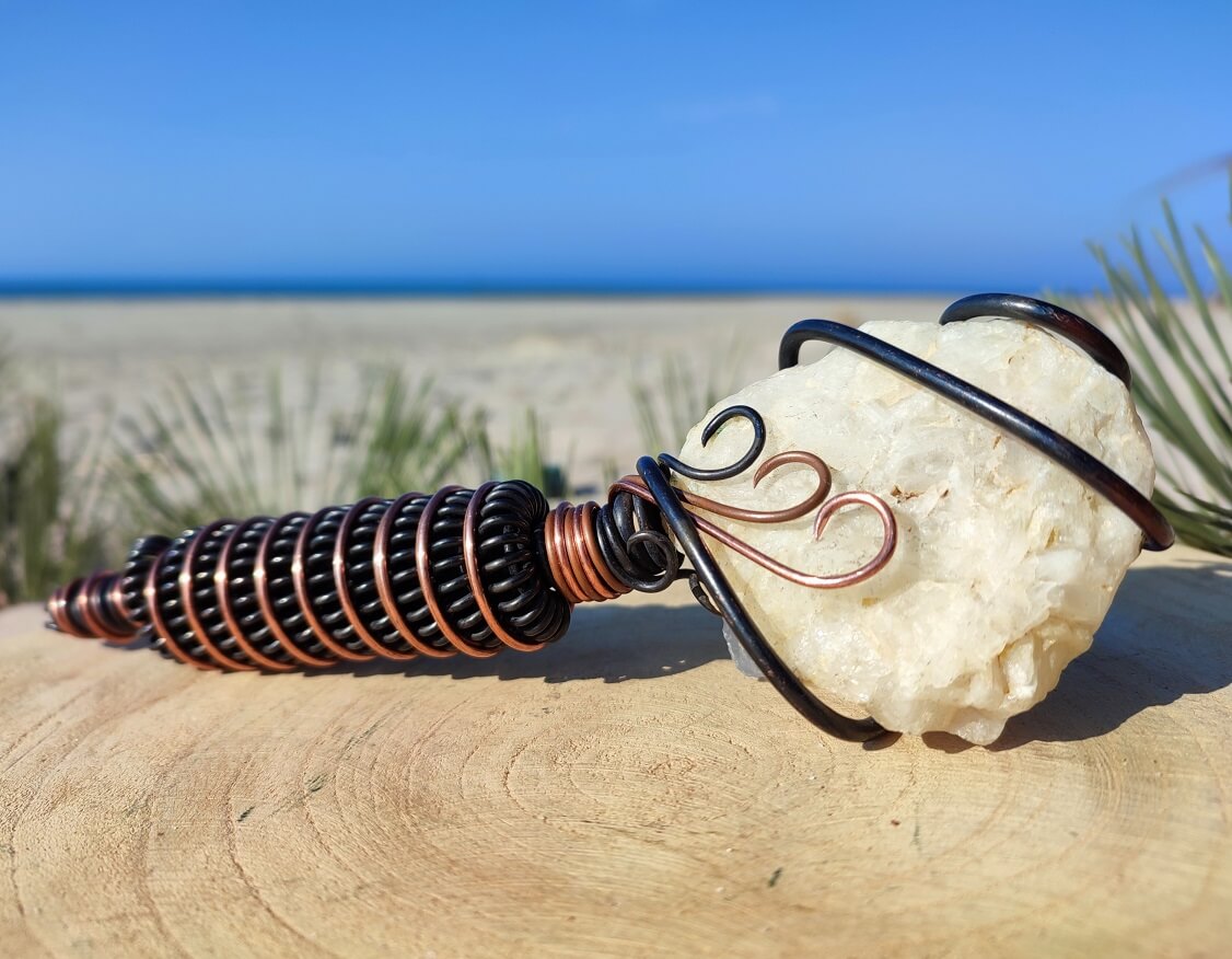 Pulsation Pen is a bioenergetic device for directing energy and healing. It is made of nano-copper – cooper covered a layer that contains information and energy imprints of natural mineral salts, wild herbs, ormus and Gans (gas at nano state). The base of the Pulsation Pen is rooted with a raw natural Crystal – Crystalquartz.