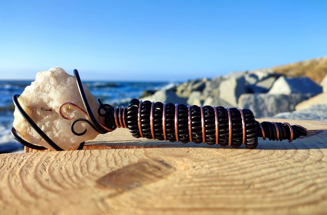 The Crystal – Crystalquartz is surrounded by a spiral Tesla coil that which strengthens the effect of the mineral, which translates into an immediate, physically felt, healing effect. Its harmonizing effect works both on the environment and the user, generating a subtle energetic pulse around it.It brings you into a natural state of meditation and relaxation as well as removes the negative impact of electro-smog, wi-fi, electrical devices, in your space.