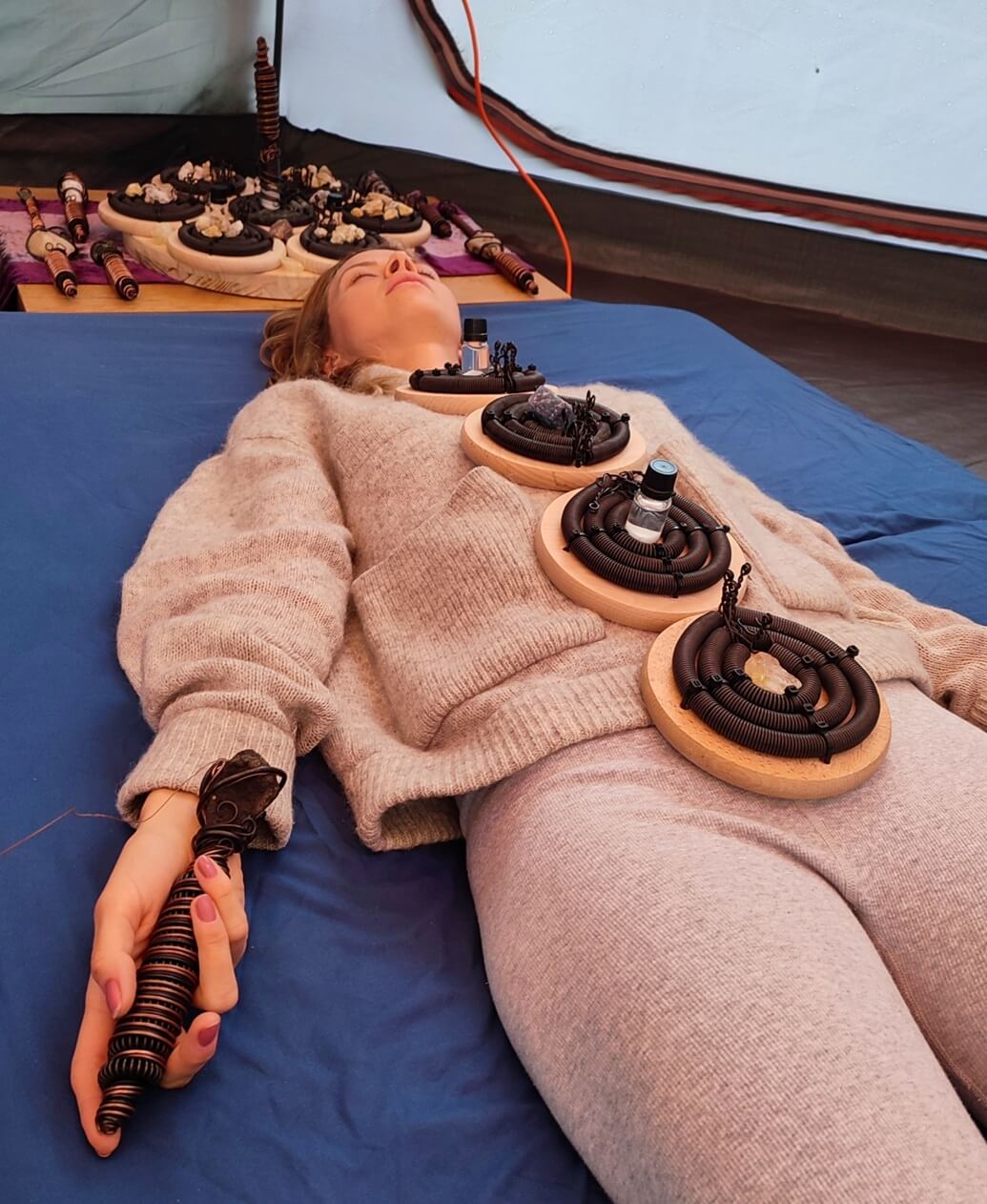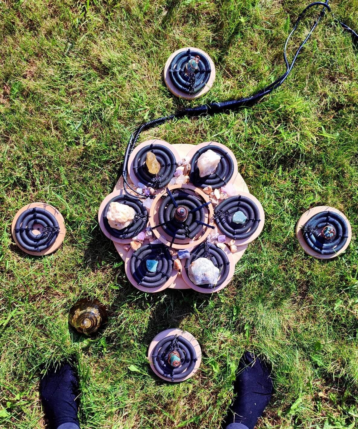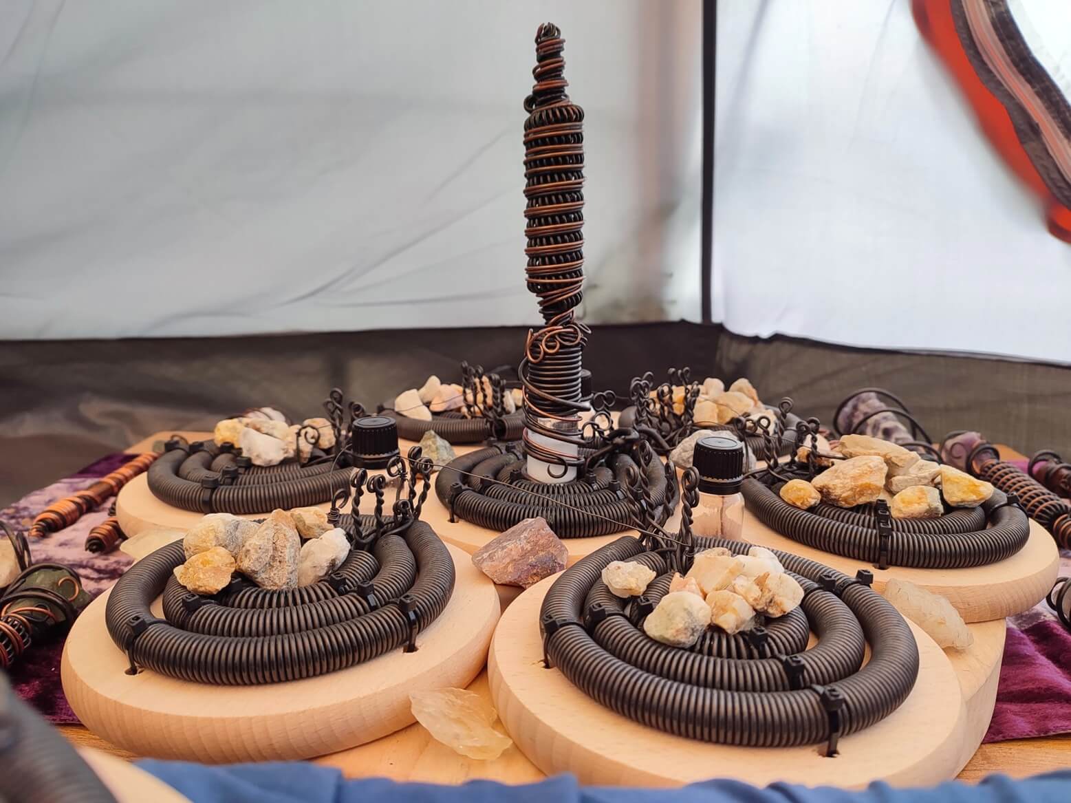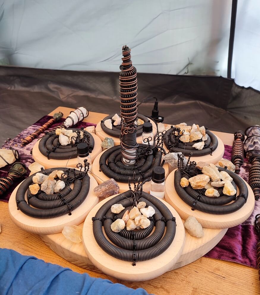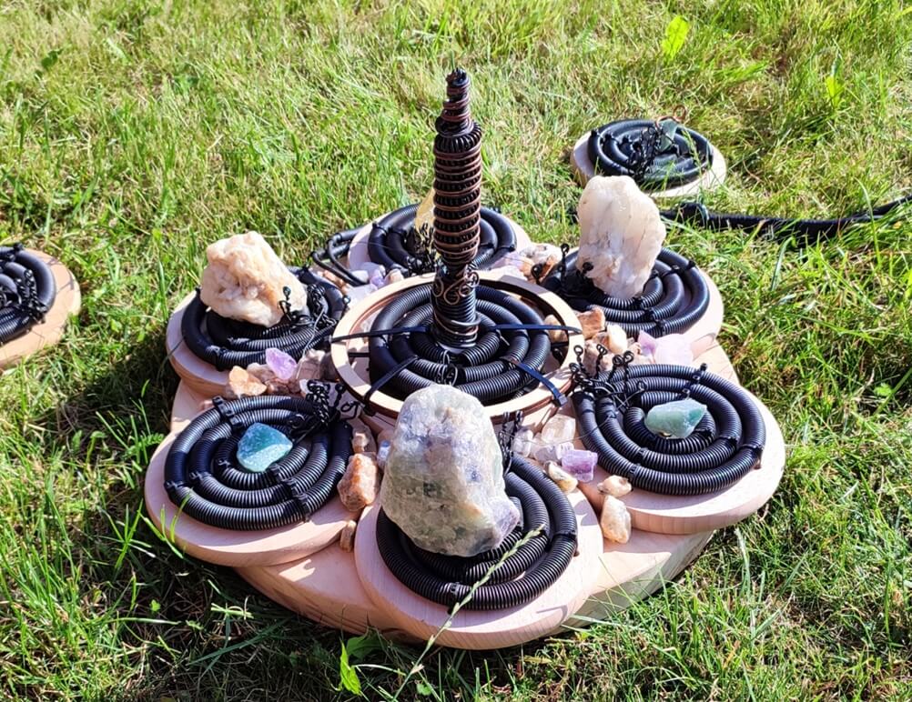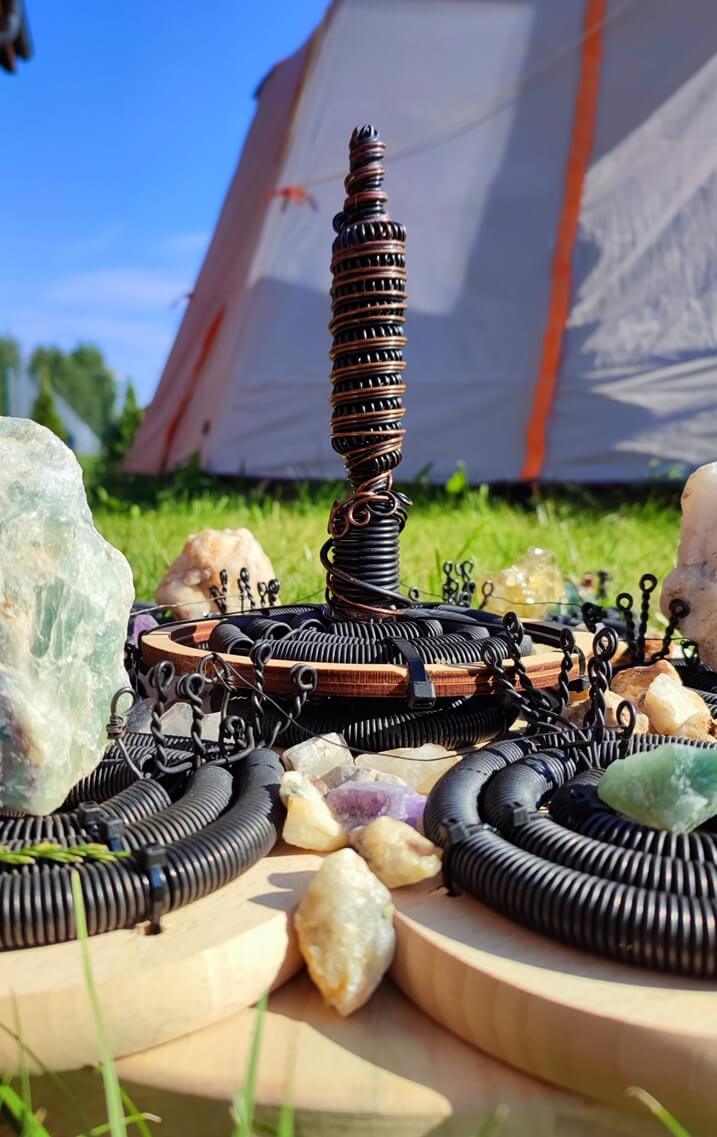 • In the center of each triple coil, you can place GANS, crystals, or organic materials (e.g. powdered herbs). Their bioenergetic field is then amplified and dispersed into the environment, influencing both space and the human body.